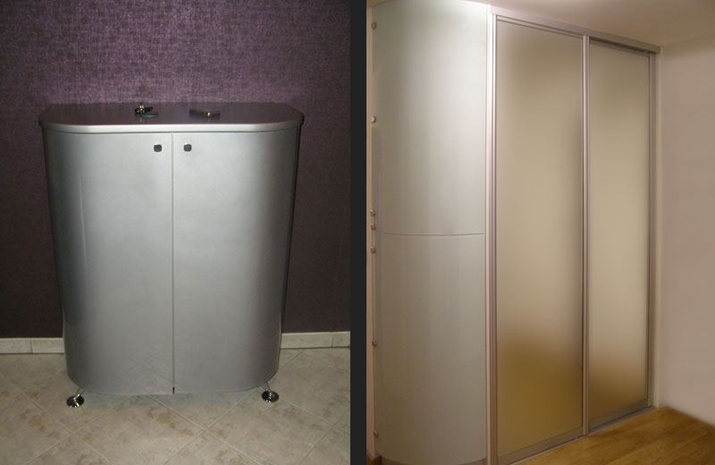 Fronte od oblog stakla, zaobljenog medijapana, a uskoro i karbona, u kombinaciji sa nepravilnim gornjim površinama daju namještaju ekstravagantan izgled.